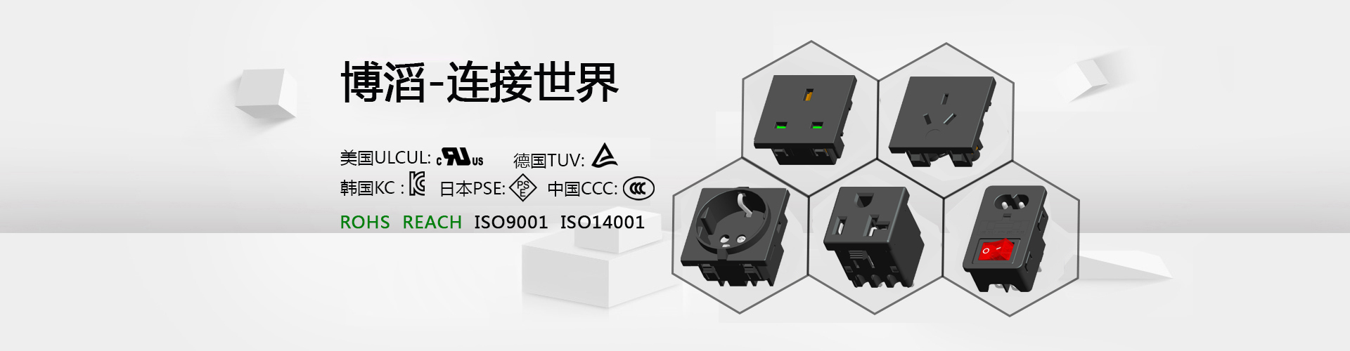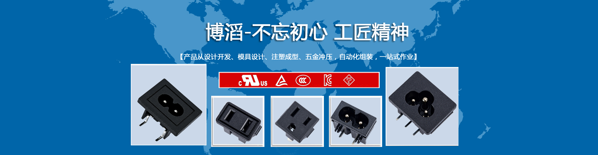 廣東博滔電子有限公司成立于 2018年,公司主要研發(fā)和生產(chǎn)各種器具輸入插座、器具耦合器等各種電源插座,產(chǎn)品廣泛應用于電腦及周邊、家用電器、工業(yè)設備、儀器儀表、通訊設備、智能家居等領域。 我司產(chǎn)品均通過美國UL和CUL 、德國TUV 、 韓國KC 、日本PSE、中國CCC 等認證。所有產(chǎn)品均能通過RoHs和Reach環(huán)保檢測。客戶主要分布在中國大陸、臺灣、日本、韓國、東南亞、北美及歐洲地區(qū),多年來公司產(chǎn)品得到世界各地客戶的肯定和信賴……